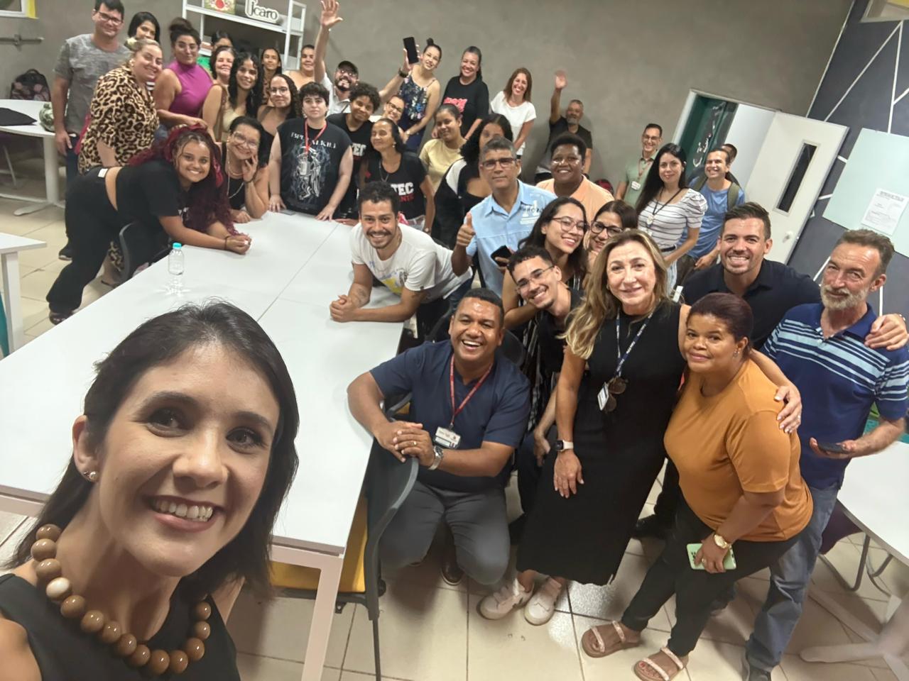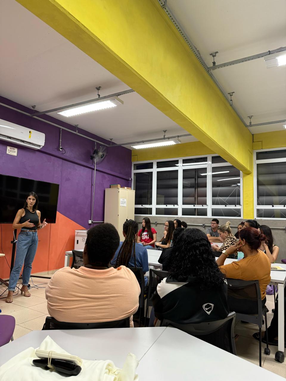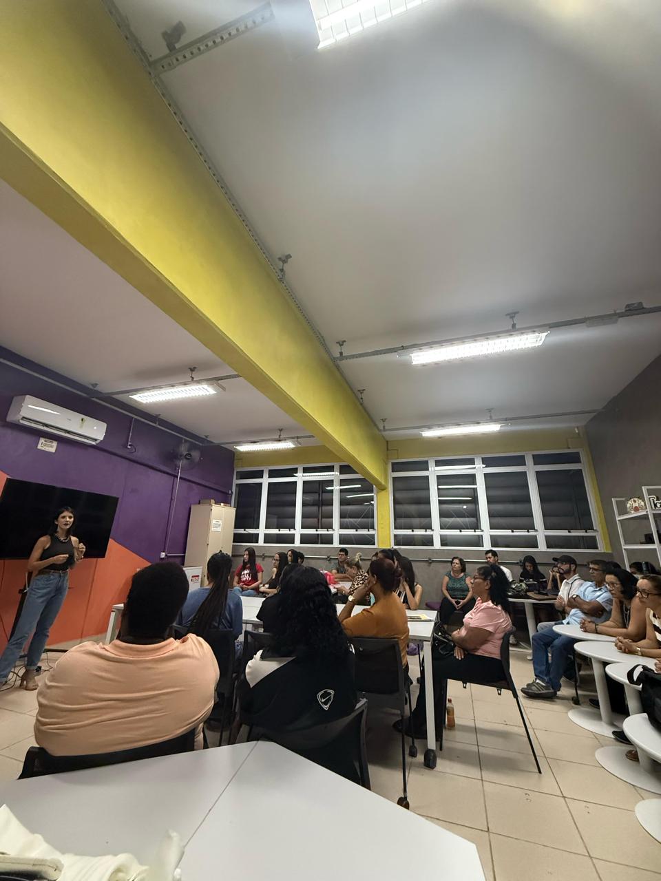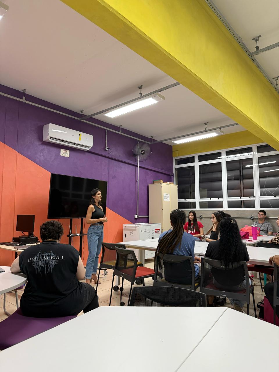 Após saciar o apetite, os alunos tiveram a oportunidade de participar de um bate-papo enriquecedor com a jornalista Carla Moreno. A conversa girou em torno de carreiras e perspectivas no mundo do trabalho. Carla Moreno compartilhou sua trajetória profissional, destacando a importância do curso de Eventos em sua carreira, e ressaltou que trabalhar à frente de uma emissora de televisão também é um grande evento. A jornalista enfatizou a importância da formação acadêmica e inspirou os alunos a buscarem seus sonhos e objetivos. Os calouros ficaram encantados com a simpatia e a experiência de Carla Moreno, e fizeram diversas perguntas sobre o mercado de trabalho e as oportunidades na área de eventos.