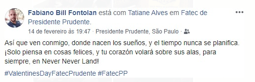 A comunidade fatecana também mobilizou as redes sociais. Todos foram convidados a escolher uma foto com alguém especial e escrever frases em Inglês ou Espanhol para demonstrar seu amor. A postagem mais criativa foi premiada com uma cesta de chocolate.