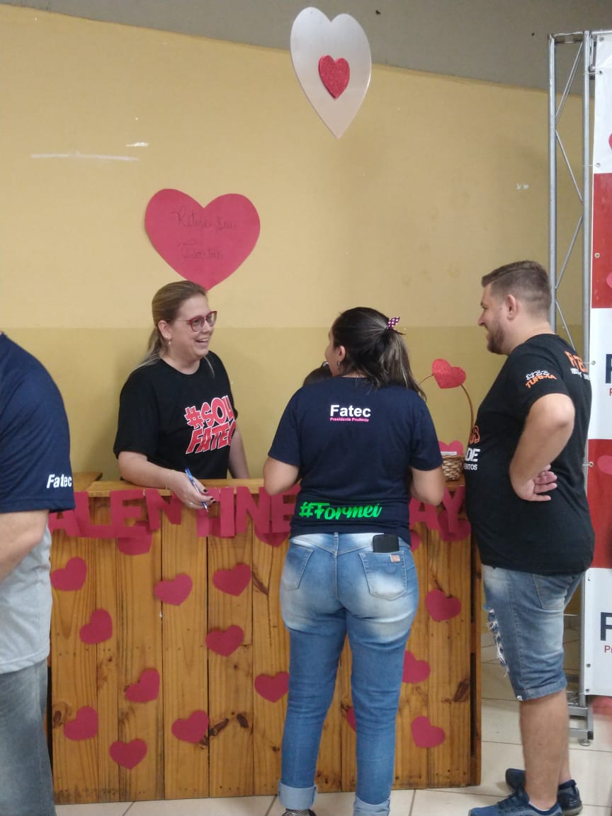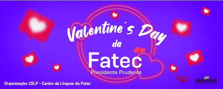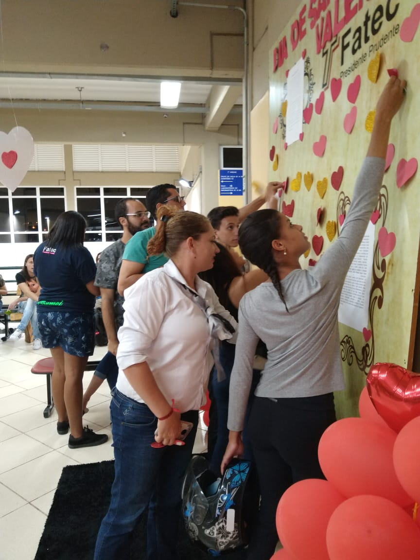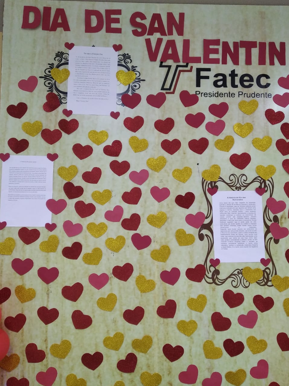 No dia 14 de fevereiro, os estudantes da Fatec-Prudente participaram de uma ação cultural promovida pelo Centro de Línguas da Instituição em comemoração ao Valentine´s Day. O 14 de fevereiro é conhecido em vários países como “o dia mais romântico do mundo”. Chamado “Valentine’s Day”, “Día de San Valentín” ou “Dia de São Valentim”, a data celebra o que é conhecido no Brasil como Dia dos Namorados.