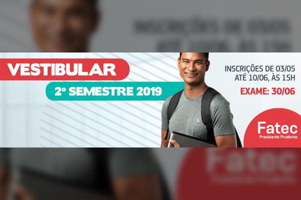 De 03/05 até às 15h do dia 10/06/2019 – Inscrições do Processo Seletivo no site vestibularfatec.com.br