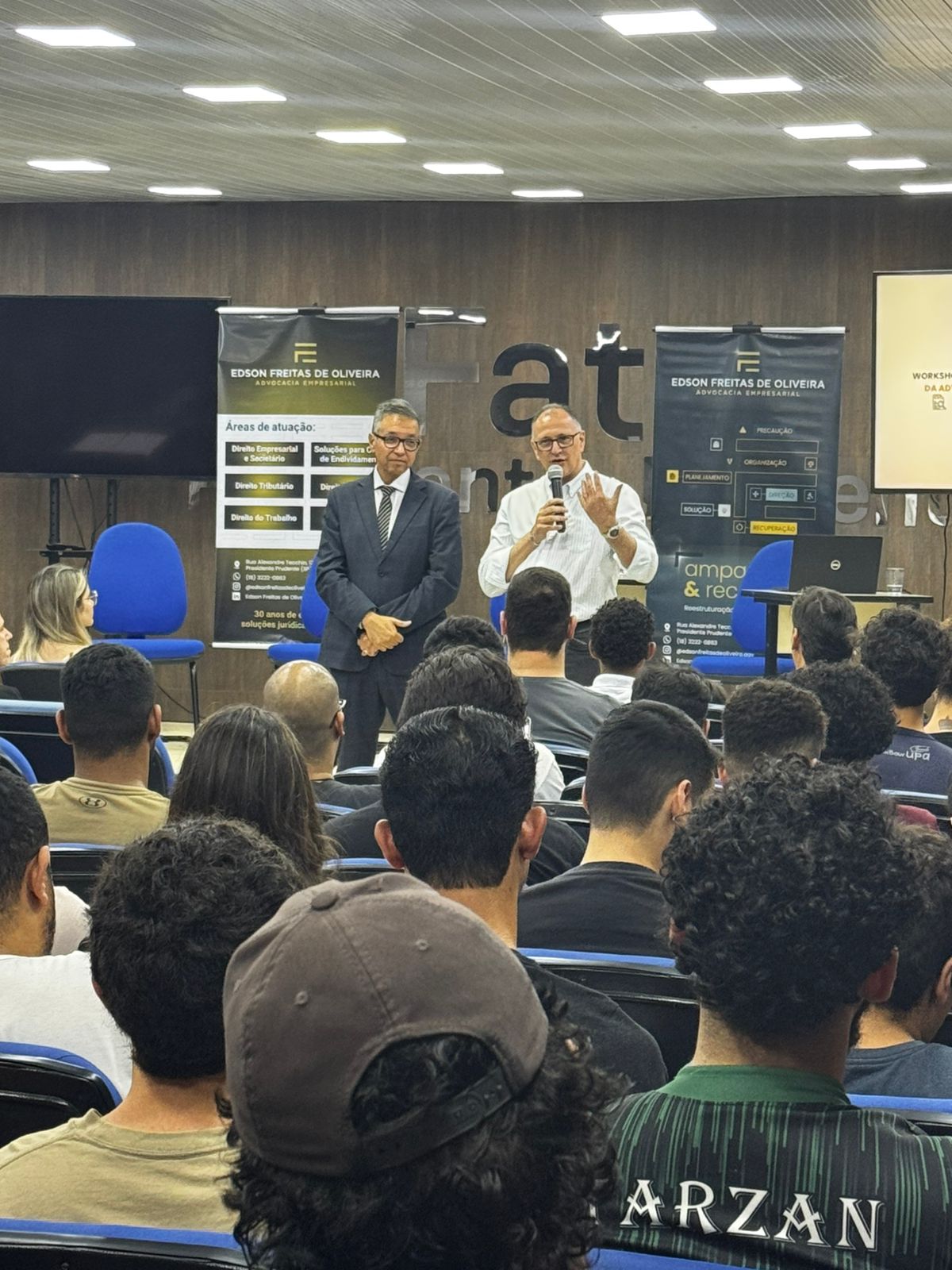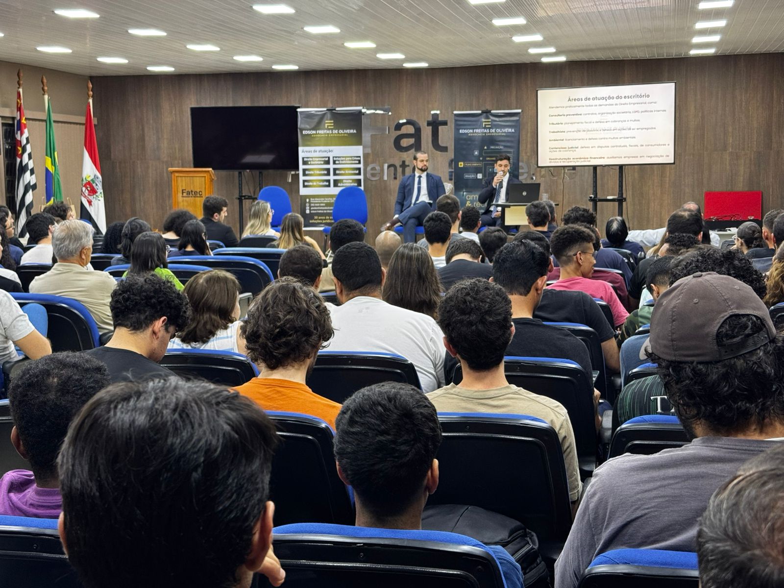 A Fatec Presidente Prudente promoveu, no dia 10 de outubro, o Workshop Especial “Desafios e Realidades da Advocacia Empresarial”, no auditório Mauro Bragatto. O evento reuniu estudantes, docentes e profissionais da área jurídica para uma noite de reflexão, aprendizado e troca de experiências sobre a prática da advocacia no ambiente corporativo.